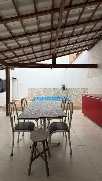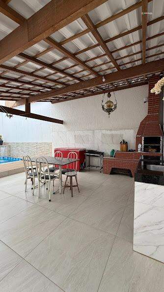 Casa ampla com lazer completo em excelente localização! encante-se com esta linda casa, projetada para oferecer conforto, praticidade e momentos inesquecíveis com a família e amigos. 3 quartos espaçosos, claros e bem arejados, sendo 1 deles uma suíte com closet. sala ampla e ventilada, integrada a uma sacada charmosa. cozinha moderna, equipada com armários planejados e bancada em granito. banho social elegante, com box em vidro e bancada em granito. área de serviço independente para mais praticidade no dia a dia. no espaço externo, um varandão gourmet com churrasqueira integrado à piscina, perfeito para receber convidados e aproveitar os dias de lazerua além disso, a casa conta com garagem para até 4 carros, garantindo comodidade para toda a família. localizada em região privilegiada, cercada por belas casas e com fácil acesso ao comércio e serviços, esta é a oportunidade de unir qualidade de vida e bem-estar em um só lugar!
